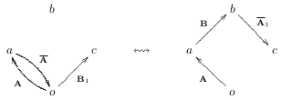 Lowercase italic letters will refer to contexts, and will be placed in the superscript position in order to describe the preand post-contexts of a patch, as in oAa . For example, if the repository has a context of o and the user then edits one file and records a new patch A, then the context might then be a. Thus, the user has created a patch with pre-context o and post-context a. To denote this we would write oAa , where a is equal to the context o with patch A appended to it.